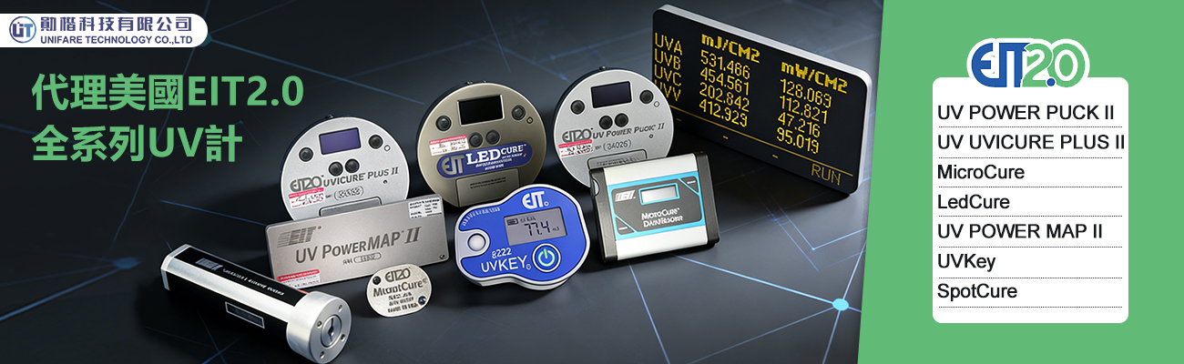 首頁 產品中心 美國 EIT2.0 條列顯示 | 圖片顯示 資料載入中,請稍後...... UVICURE PLUS II EIT2.0 LLC LED CURE PROFILER EIT 2.0 LLC UV MAP EIT 2.0 LLC UV POWERMAP Il EIT 2.0 LLC UVKEY g254 EIT2.0 LLC MICROCURE& DATAREADER EIT 2.0TM LLC SPOTCURE®UVINTENSITY METER EIT2.0 LLC ON-LINE MEASUREMENT PRODUCT OVERVIEW