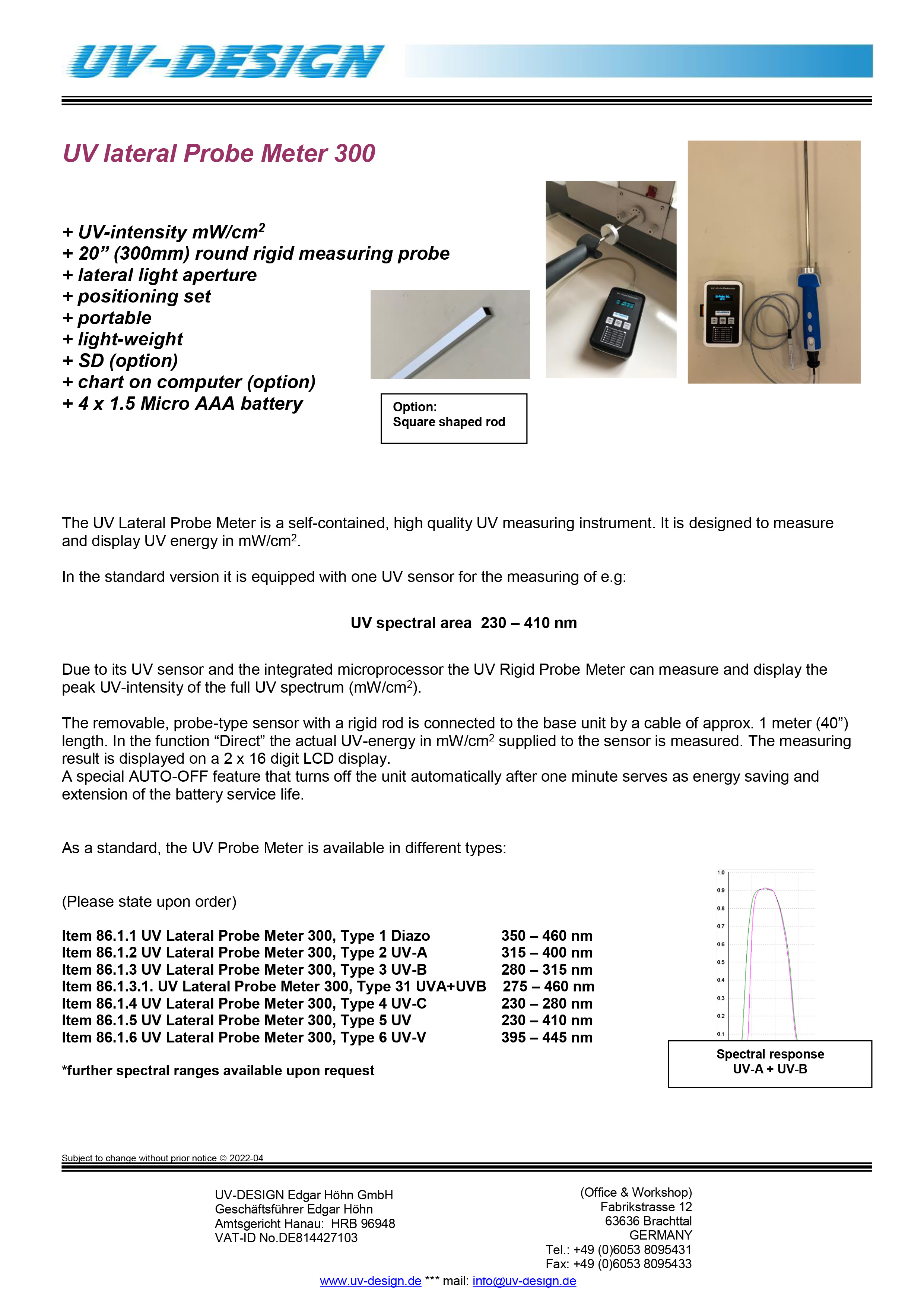 UV lateral Probe Meter 300